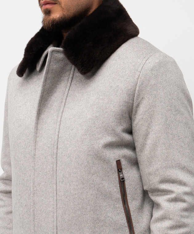 Серая куртка с кашемиром на меху