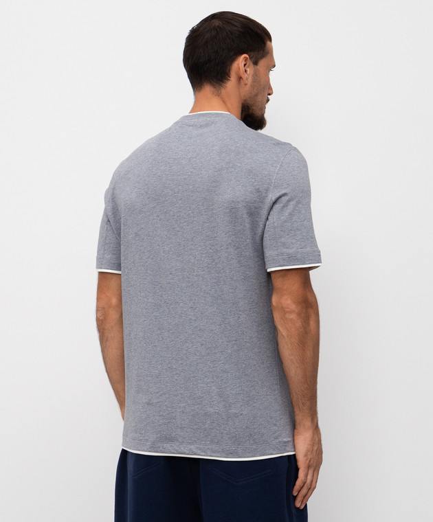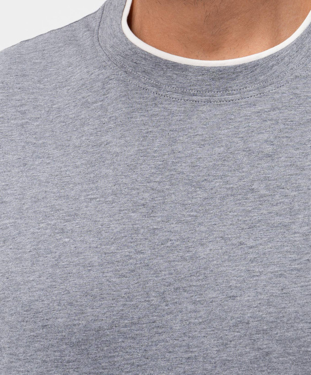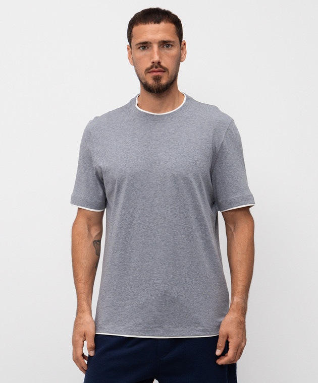 Brunello Cucinelli Серая меланжевая футболка с эффектом наложения слоев M0B137427