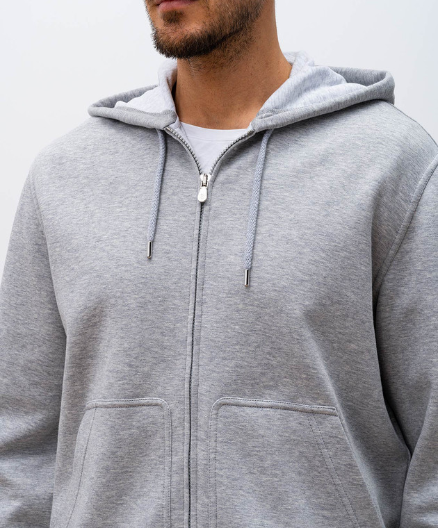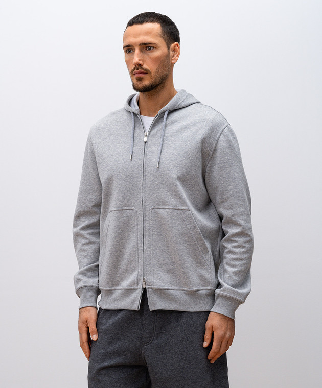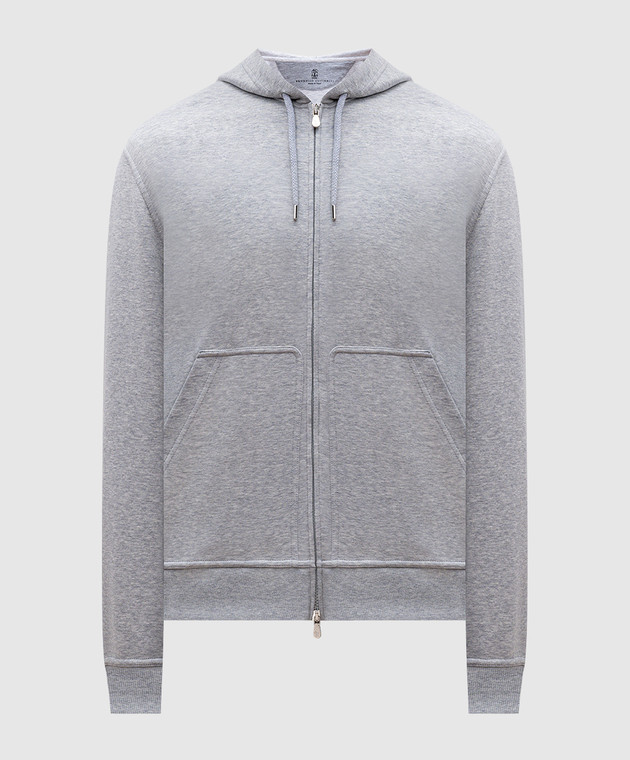 Серая меланжевая спортивная куртка с капюшоном