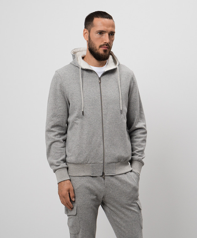 Серая меланжевая спортивная куртка с логотипом