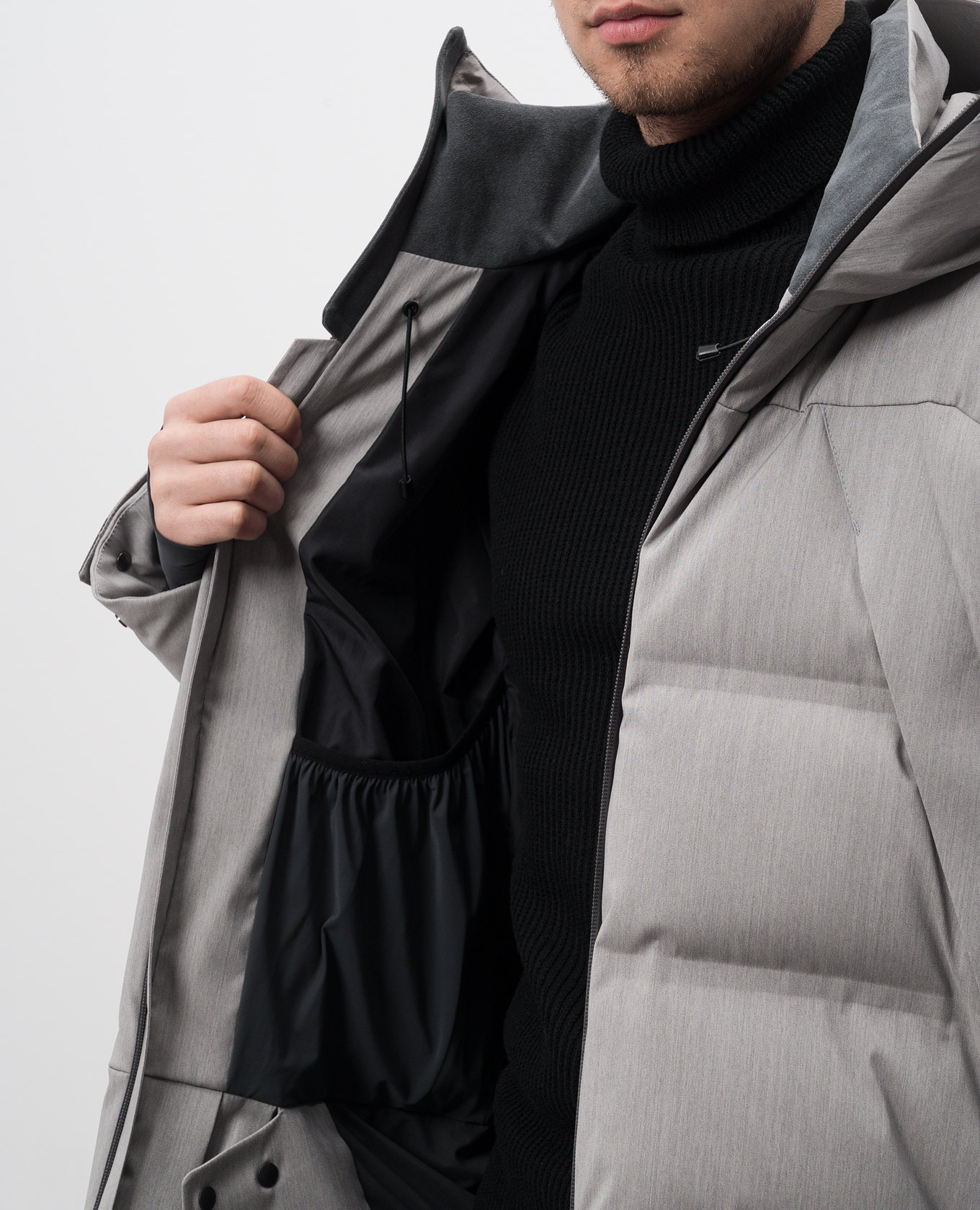 • Дополнительно вшитый капюшон на кулисках, отверстие для большого пальца на манжете, ветрозащитная юбка на кнопках, вентиляционные планки на молниях в подмышках, регулируемые хлястики на манжетах на кнопках