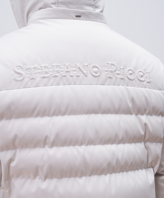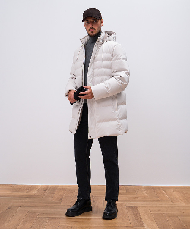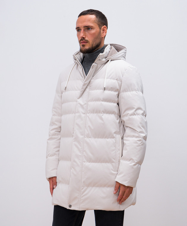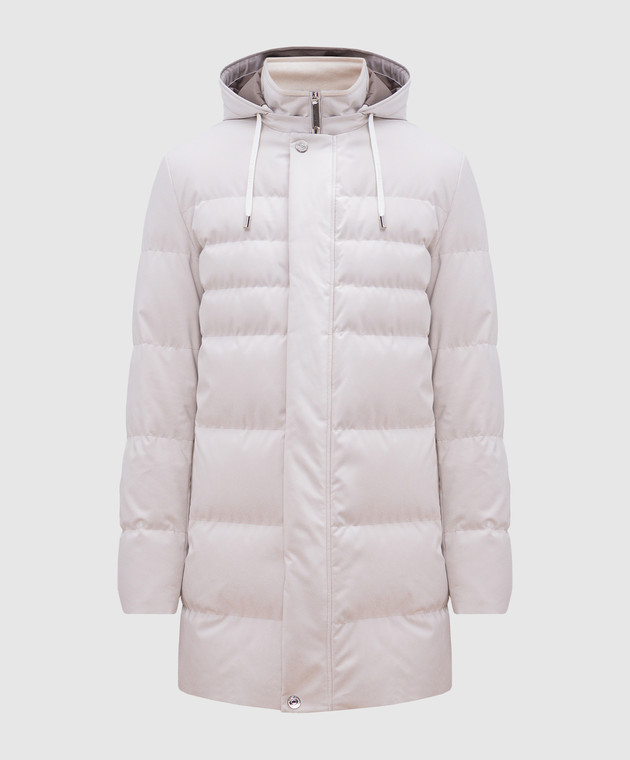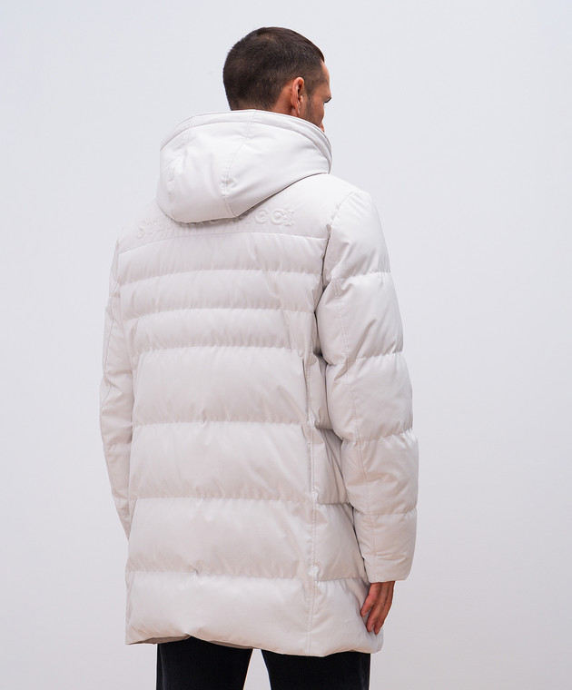 Серая пуховая куртка с простежкой логотипа
