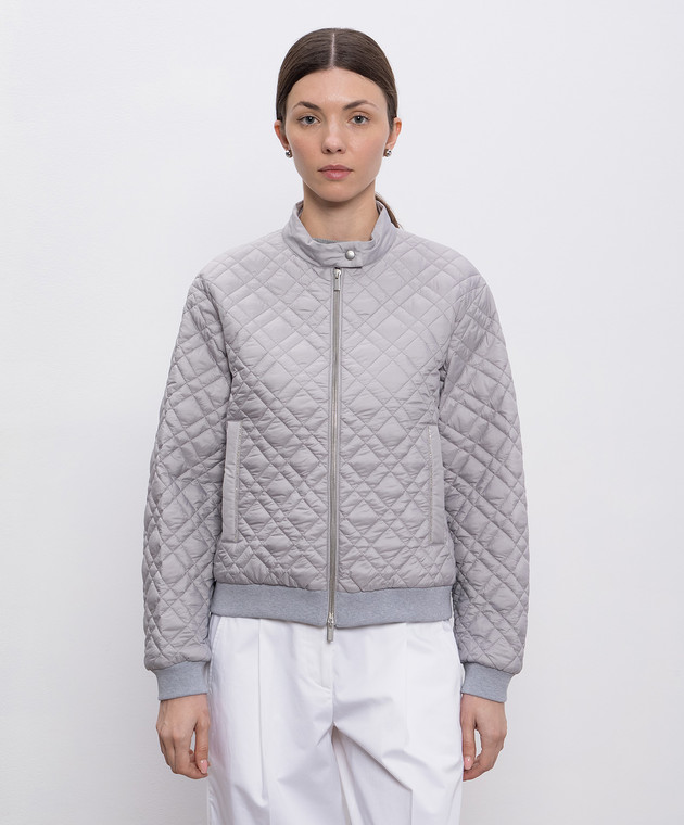 Серая стеганная куртка с цепочкой мониль