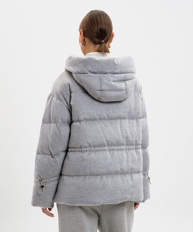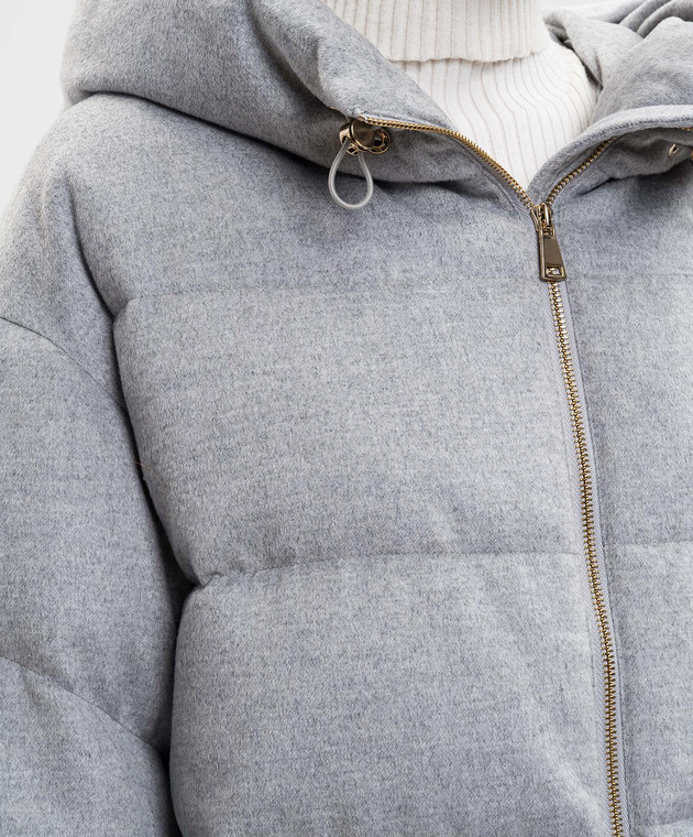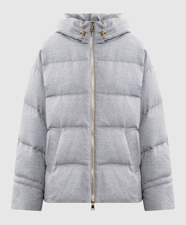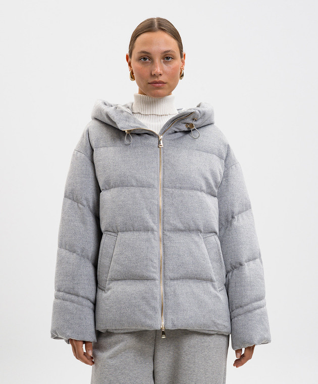 Серая стеганная пуховая куртка из шелка и шерсти верблюда