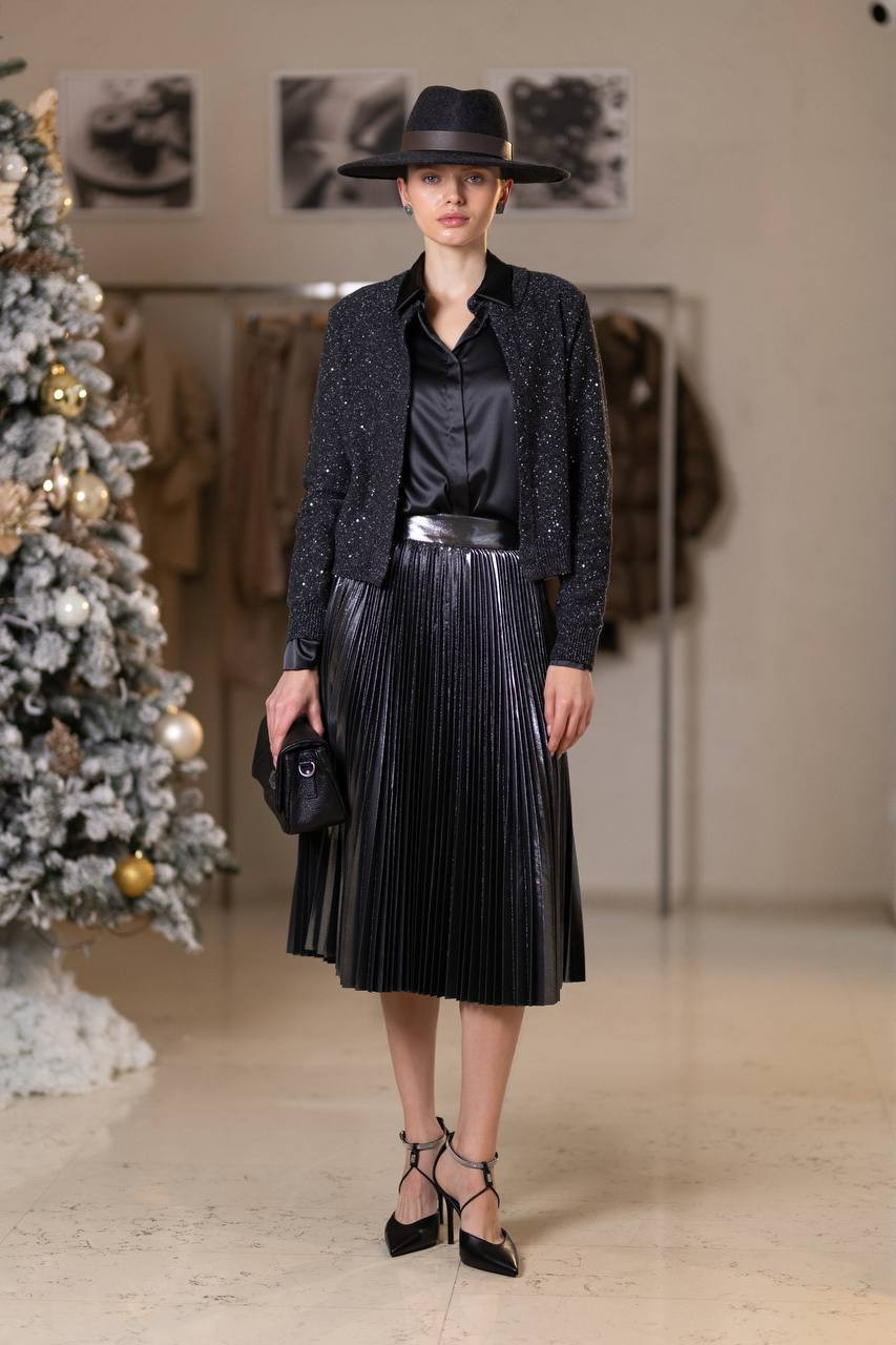 Серебристая юбка-плиссе