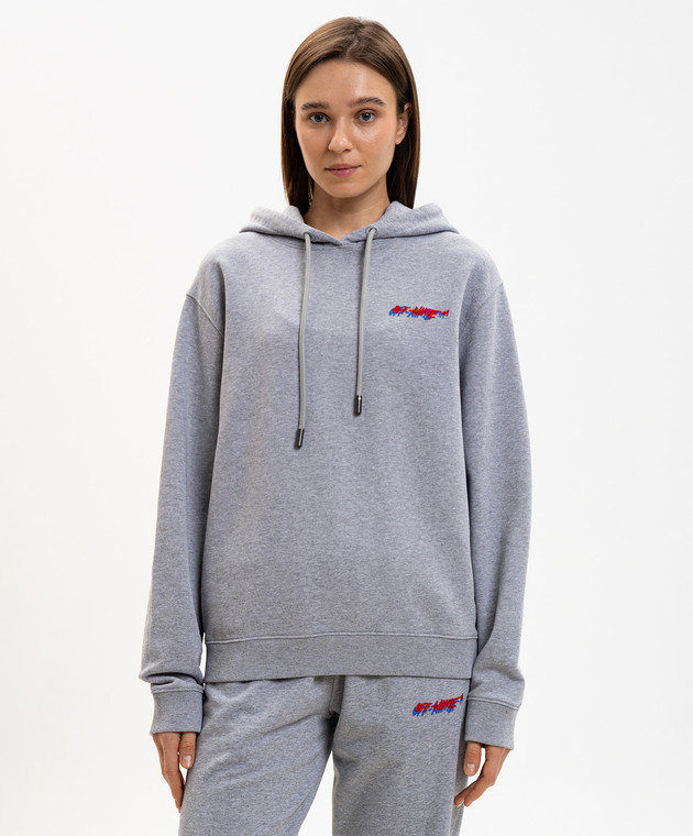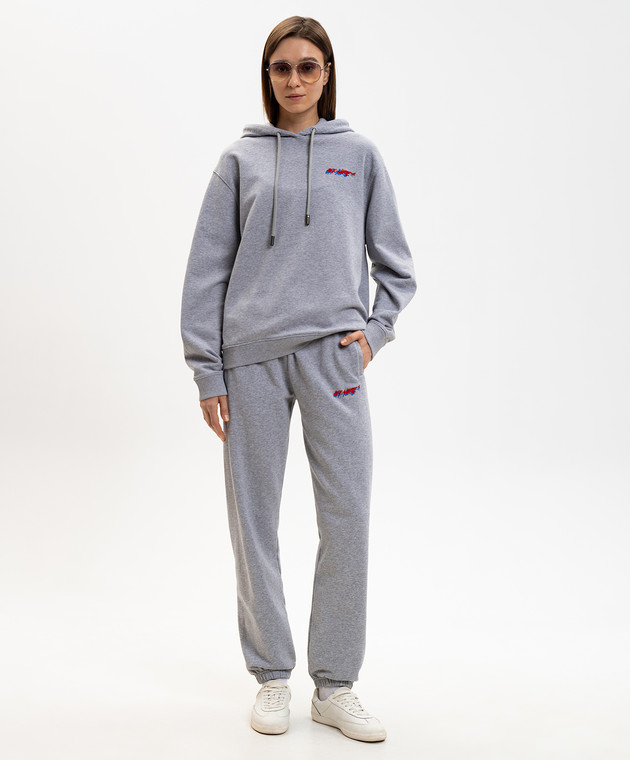 Серое меланжево худи с вышивкой логотипа