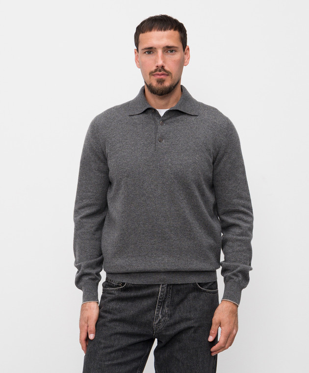 Серое меланжевое поло из кашемира