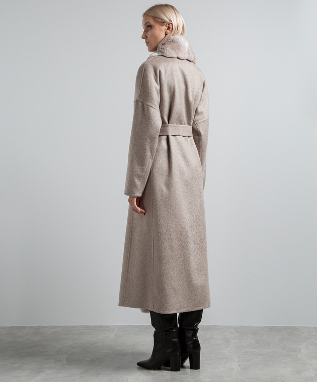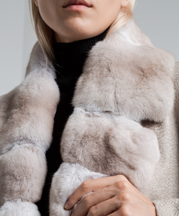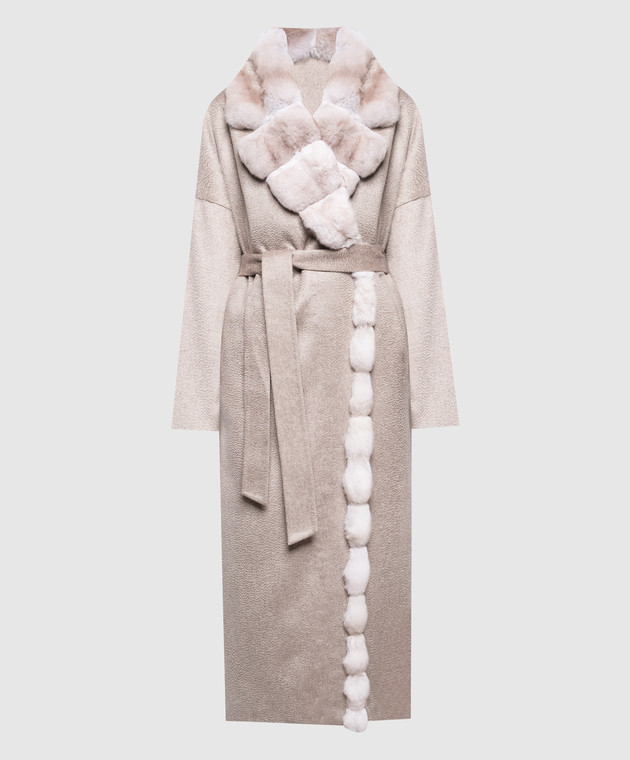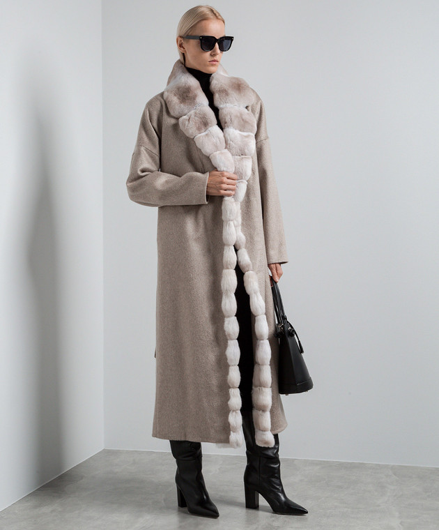 Бежевое пальто из кашемира с мехом шиншиллы
