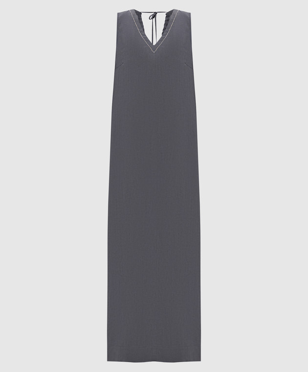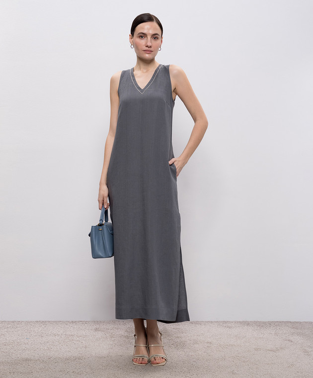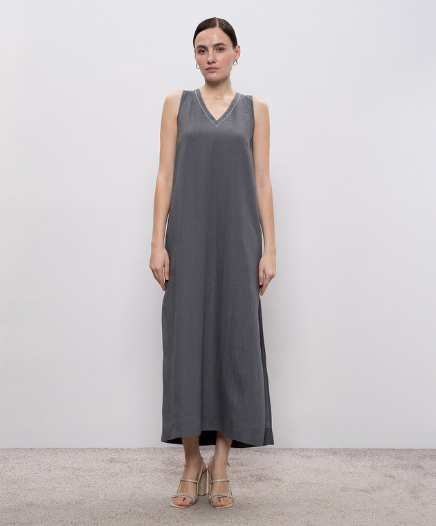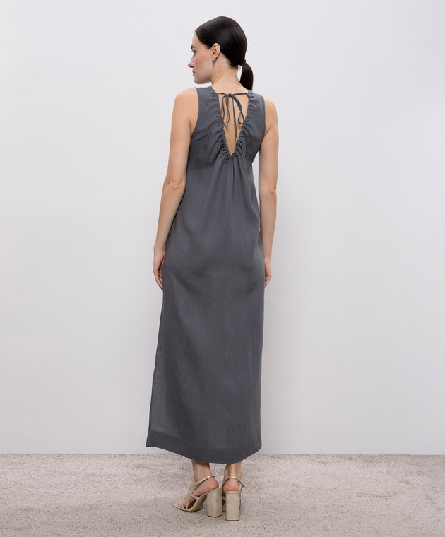 Серое платье из льна с цепочкой мониль