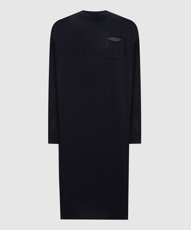 Серое платье из шерсти, шелка и кашемира с цепочкой мониль