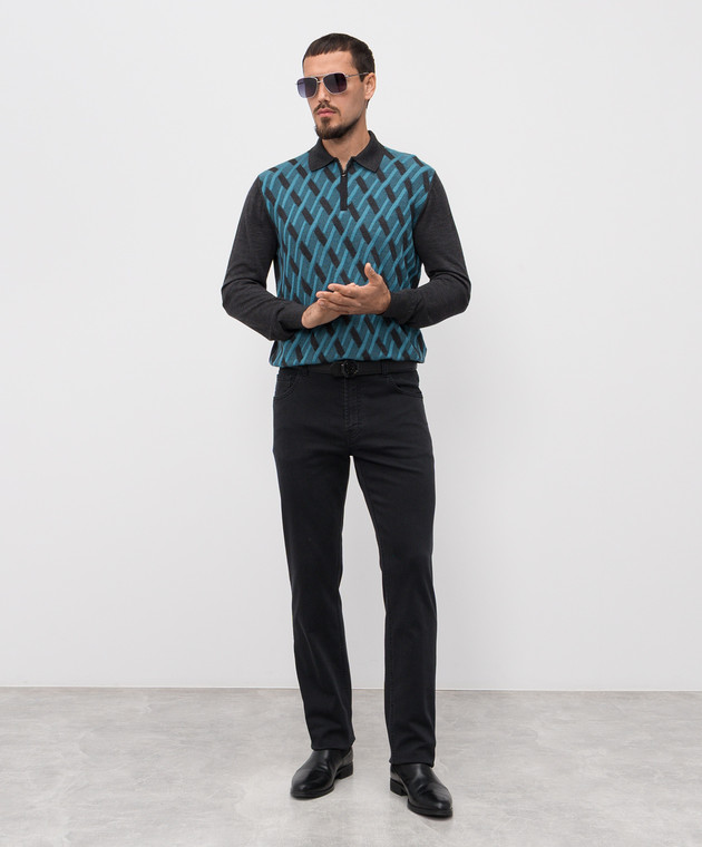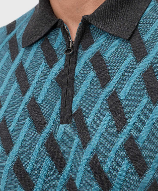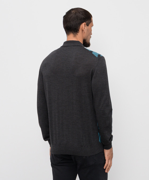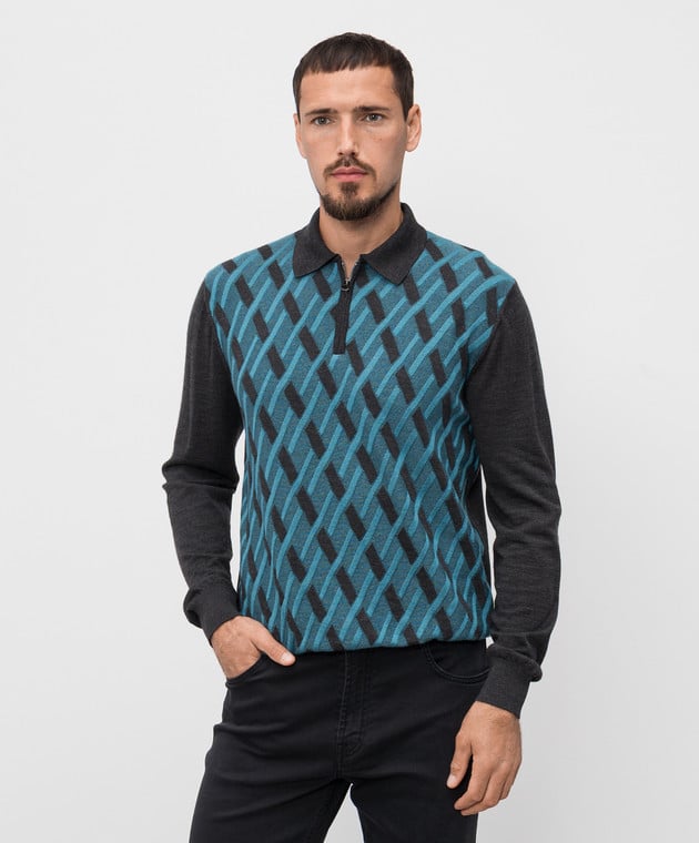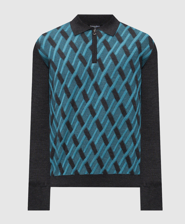 Серое поло из шерсти, кашемира и шелка в узор