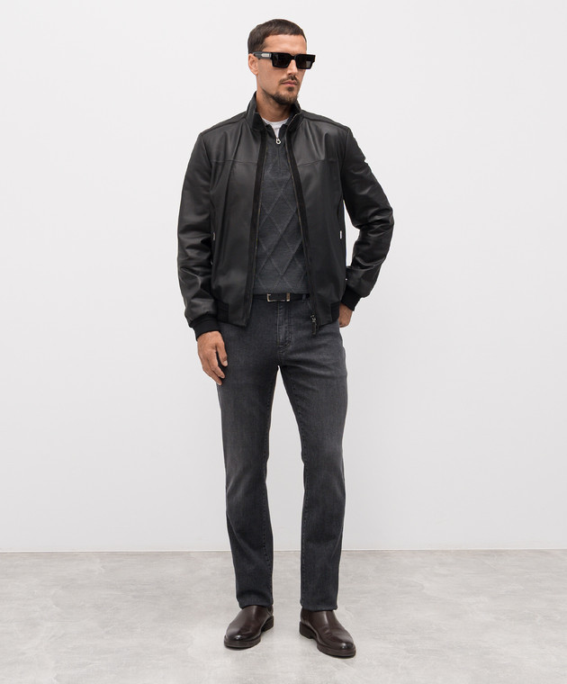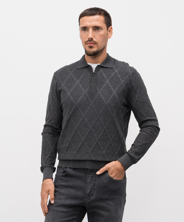 Серое поло с кашемиром в геометрический узор