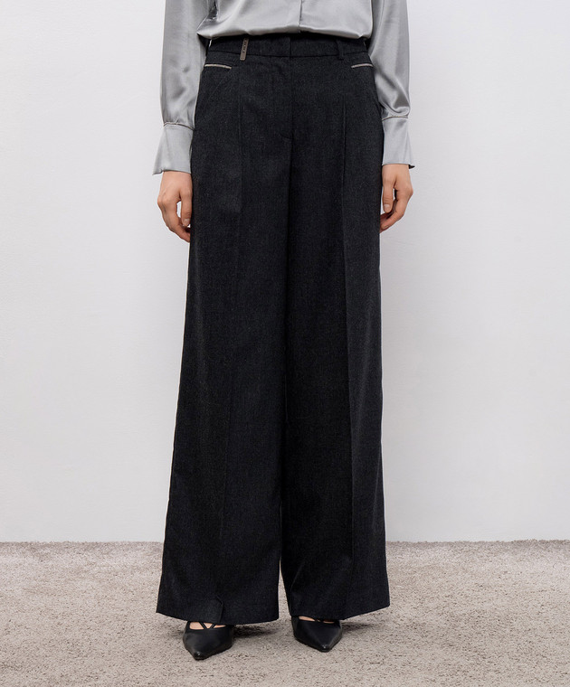 Серые брюки из шерсти и кашемира с цепочкой мониль