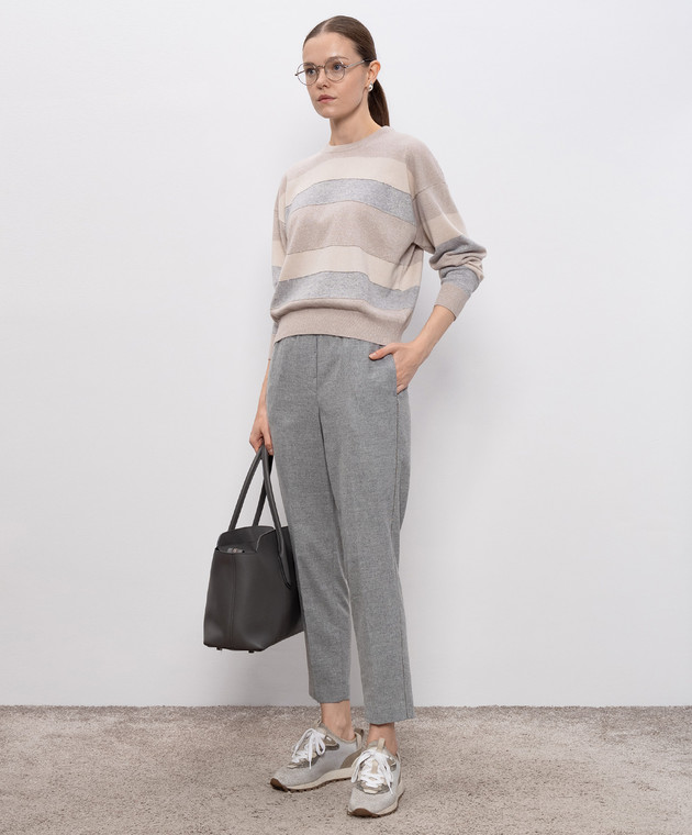 Серые брюки с шерстью с цепочкой мониль