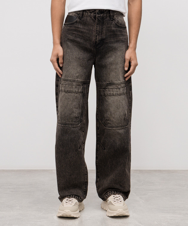 Серые джинсы-карго с эффектом потертости