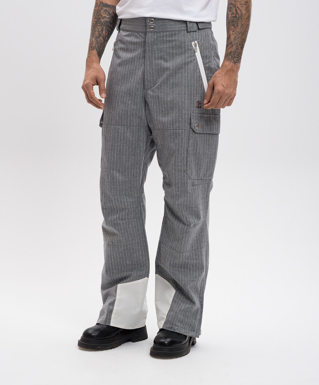 Серые горнолыжные брюки из шерсти в полоску