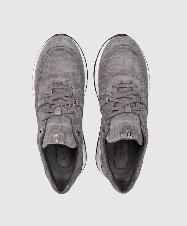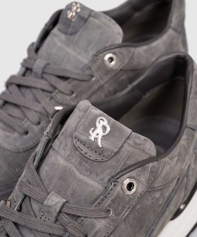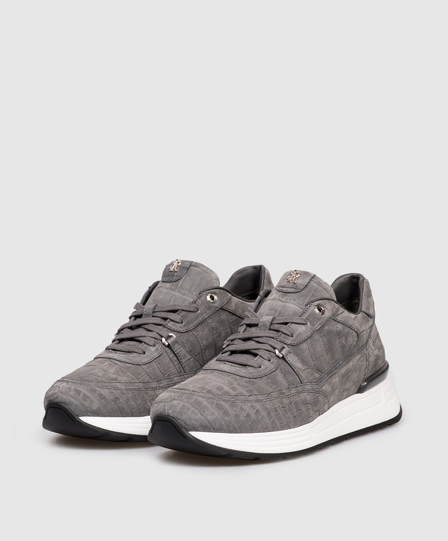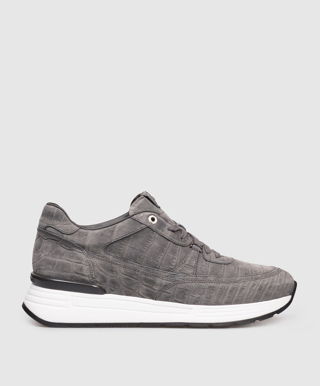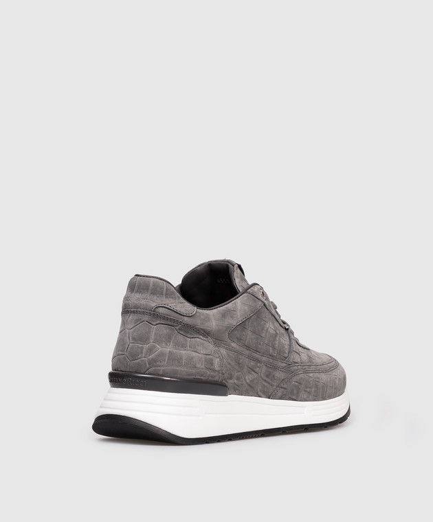 Серые кроссовки из кожи крокодила с эффектом нубука