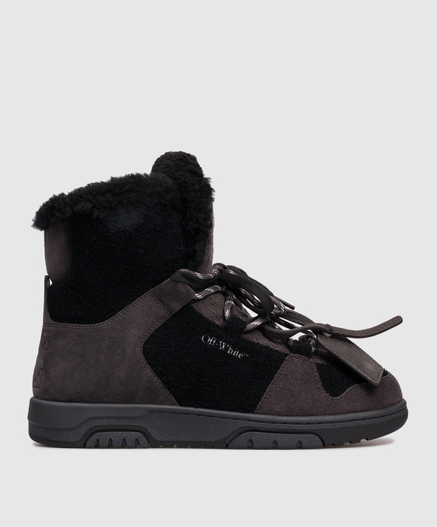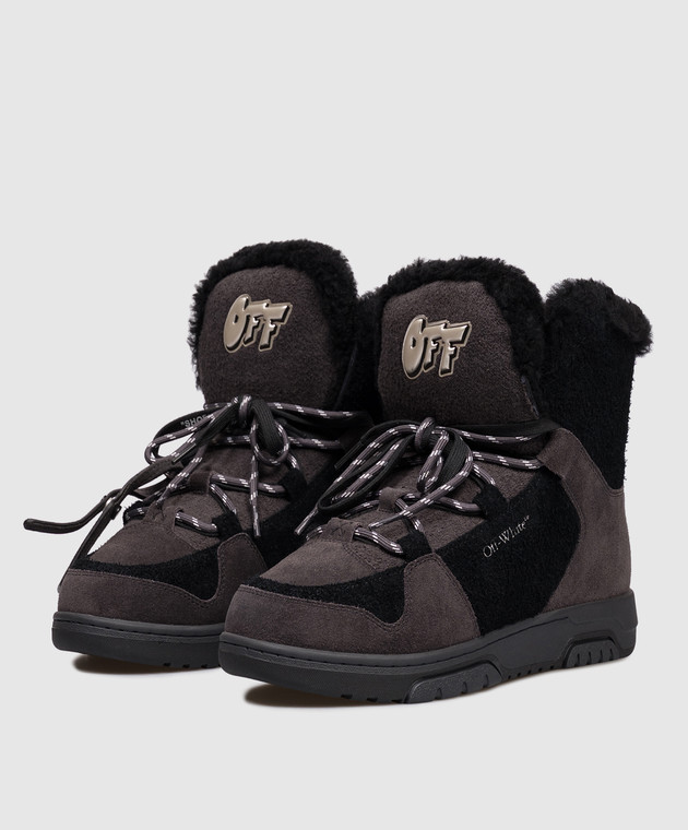 Серые замшевые ботинки на меху с логотипом OFF