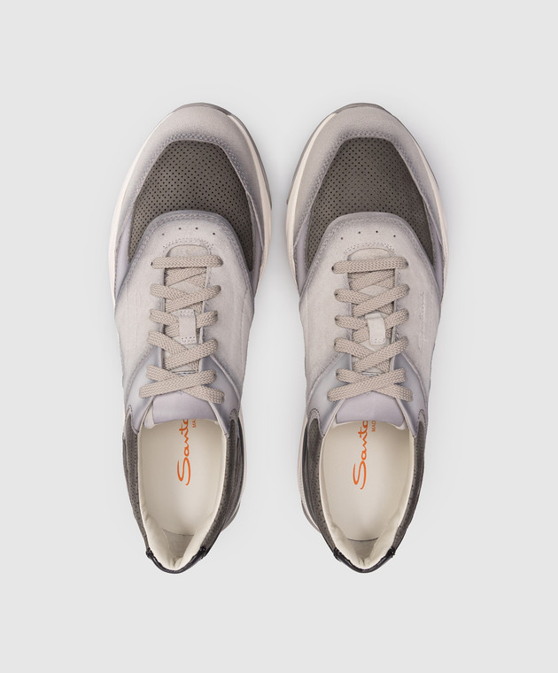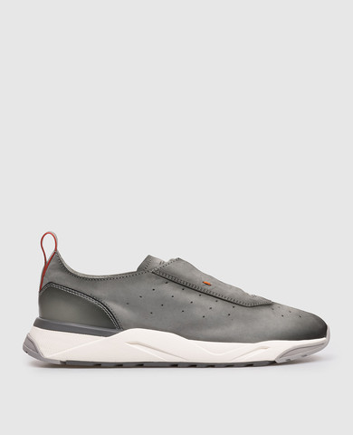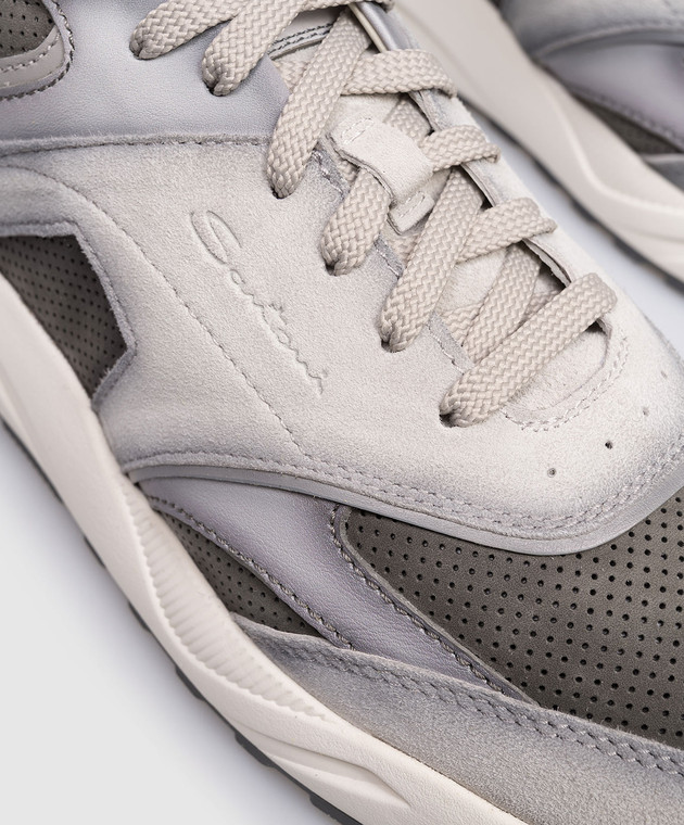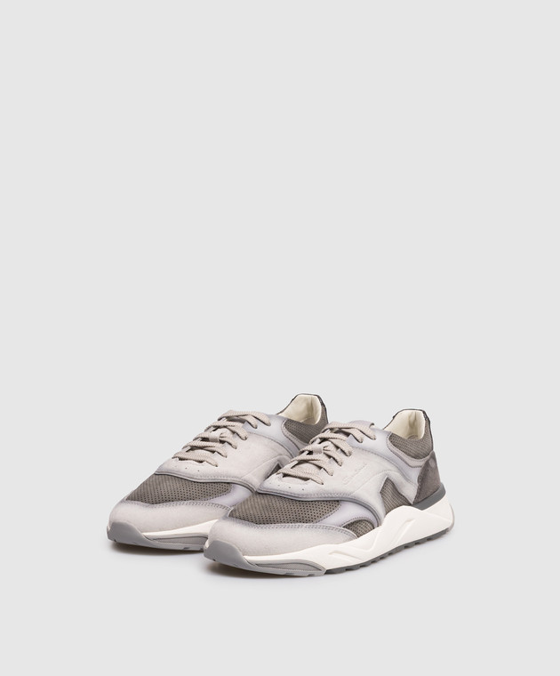 Серые замшевые кроссовки с тиснением логотипа