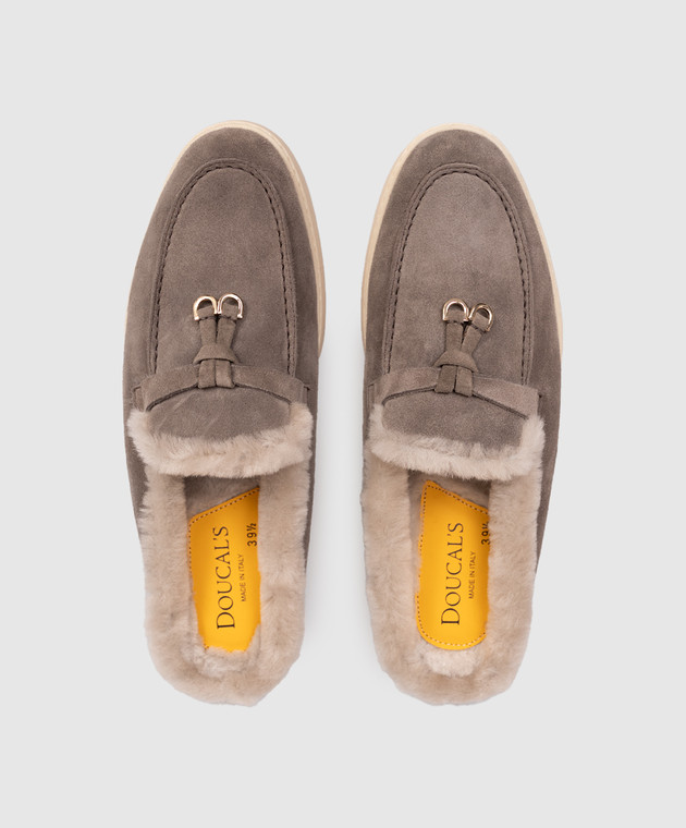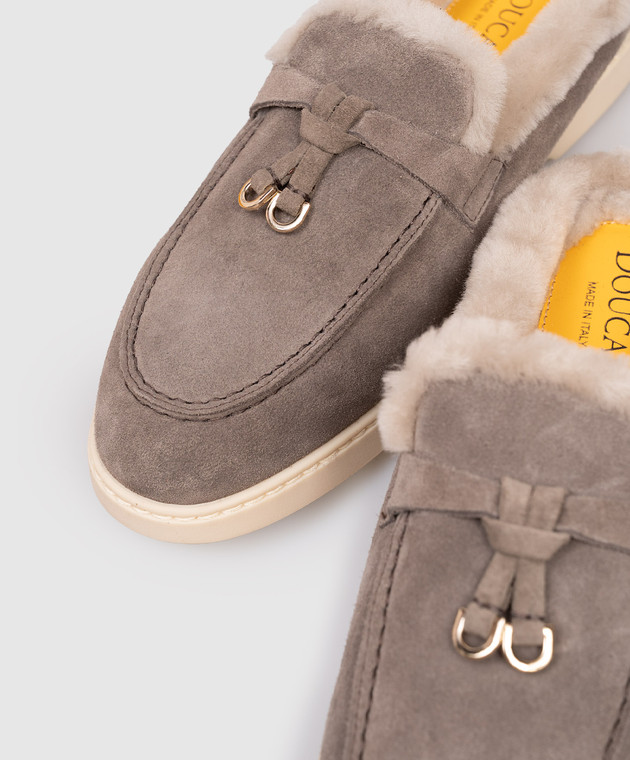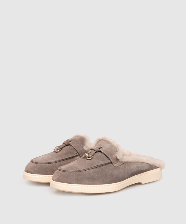 Серые замшевые мюли на меху