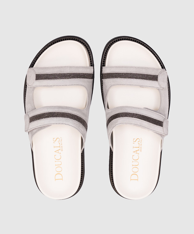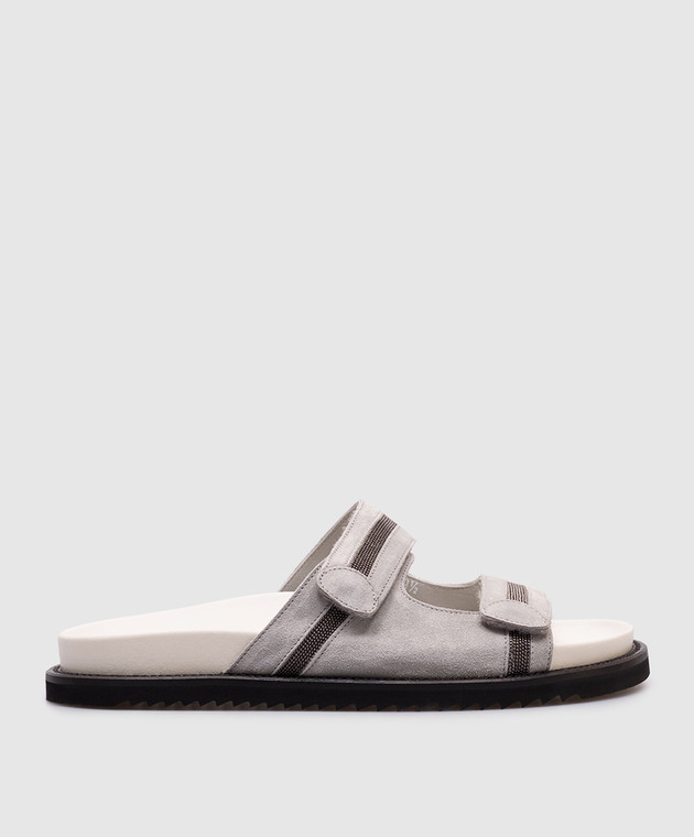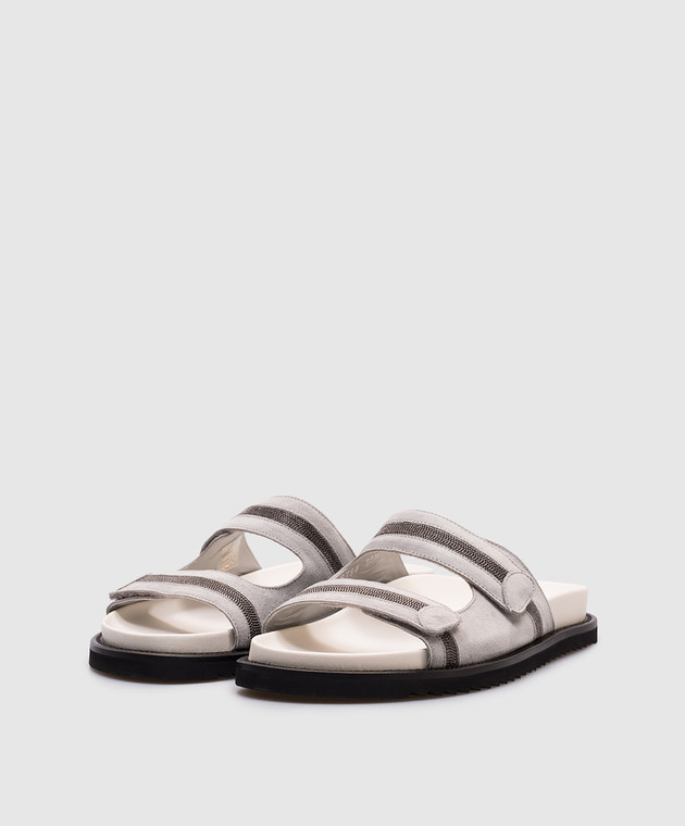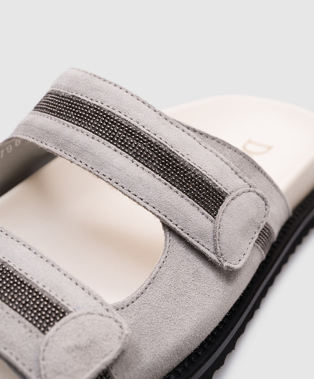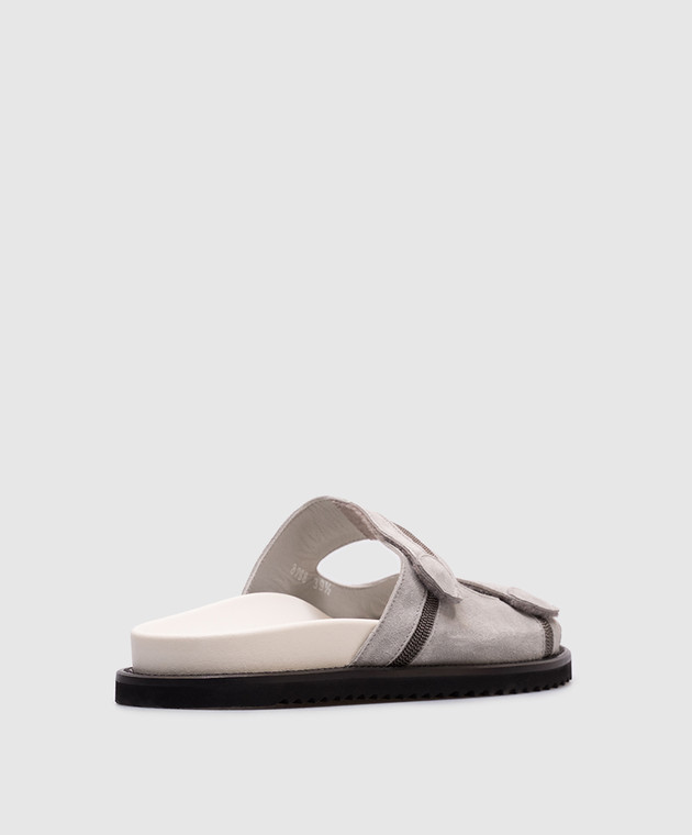 Серые замшевые шлепанцы с цепочкой мониль