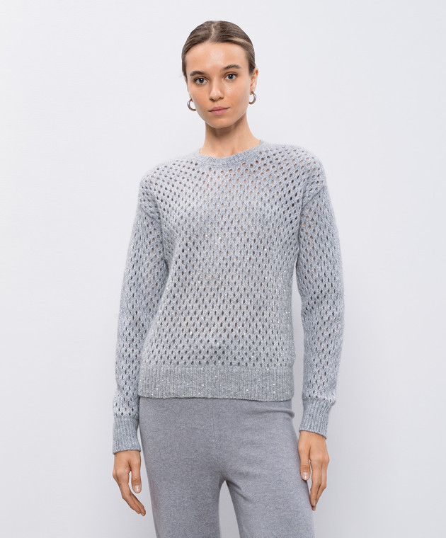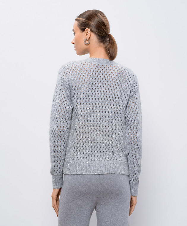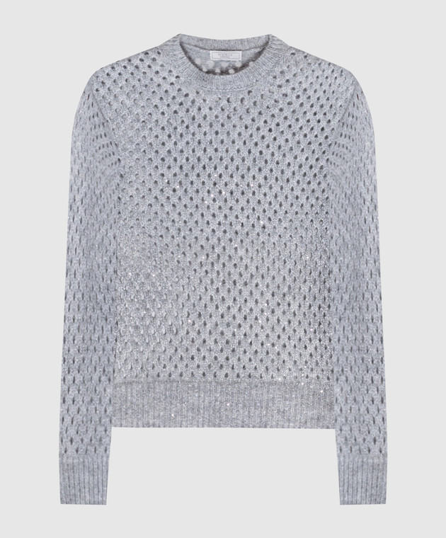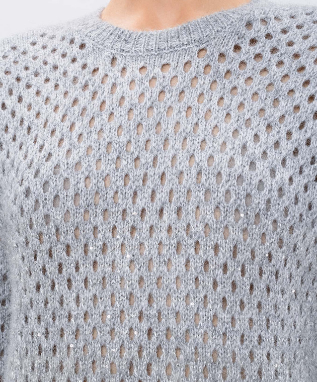 Серый ажурный свитер с шерстью с пайетками
