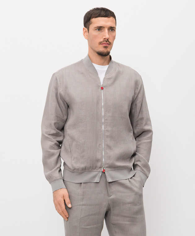 Серый бомбер из льна