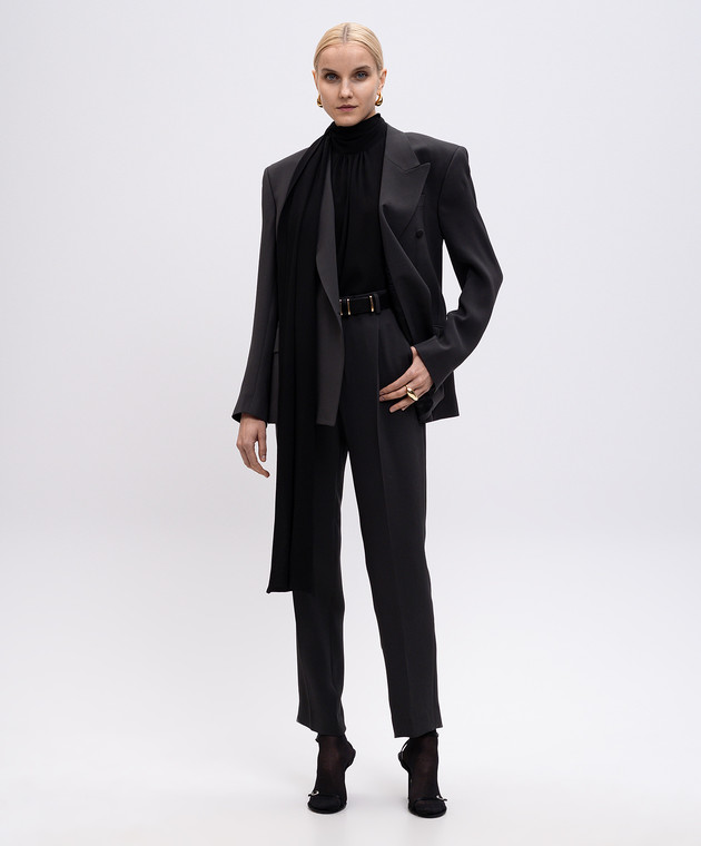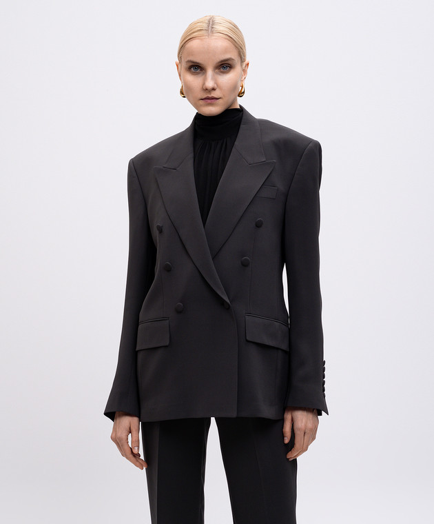 Серый двубортный жакет из шелка
