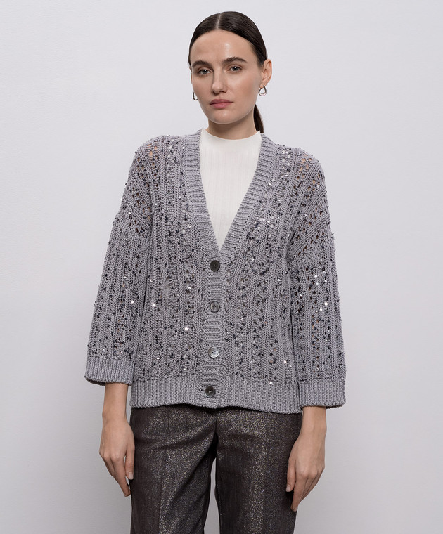 Серый кардиган с пайетками