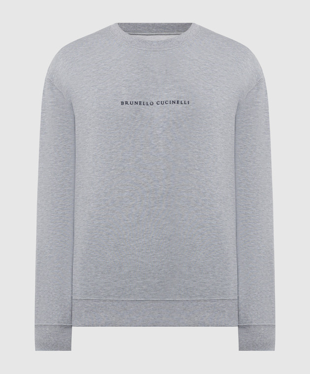 Серый меланжевый свитшот с вышивкой логотипа