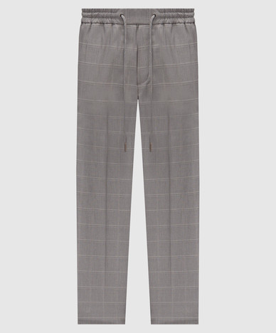 Серый палантин из шерсти с вышивкой логотипа в клетку