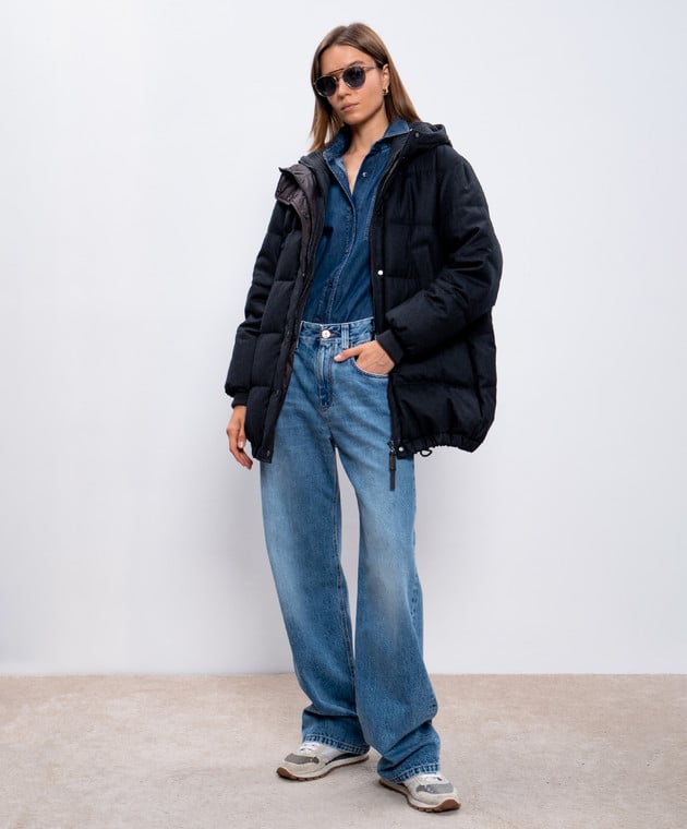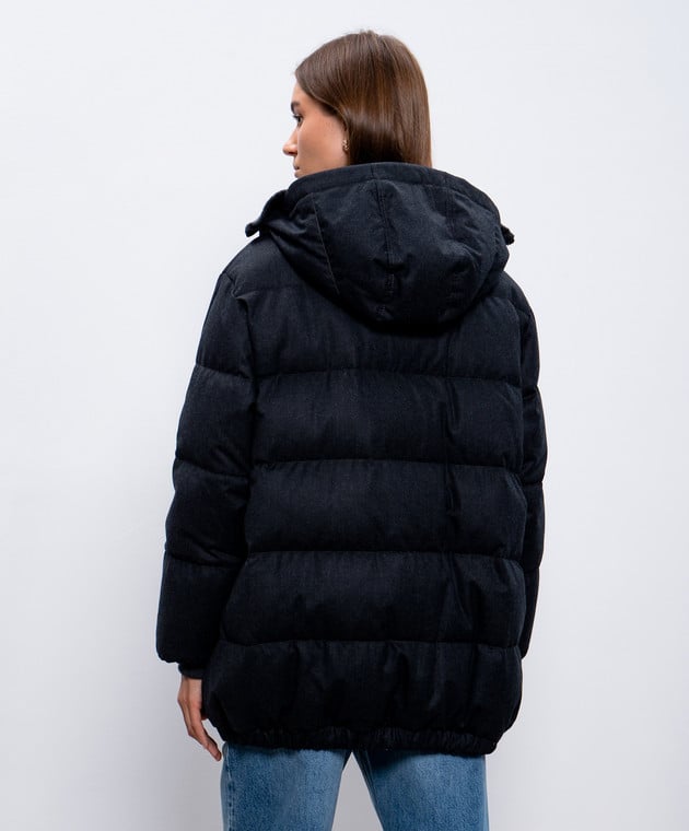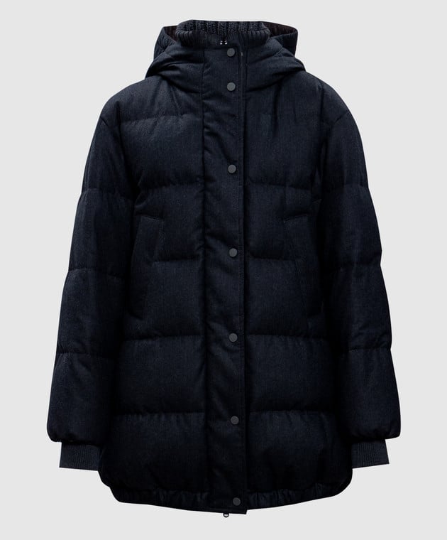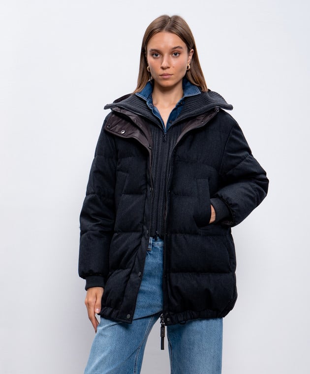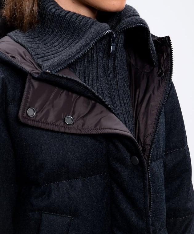 Серый пуховик из шерсти с планкой из кашемира с цепочкой мониль