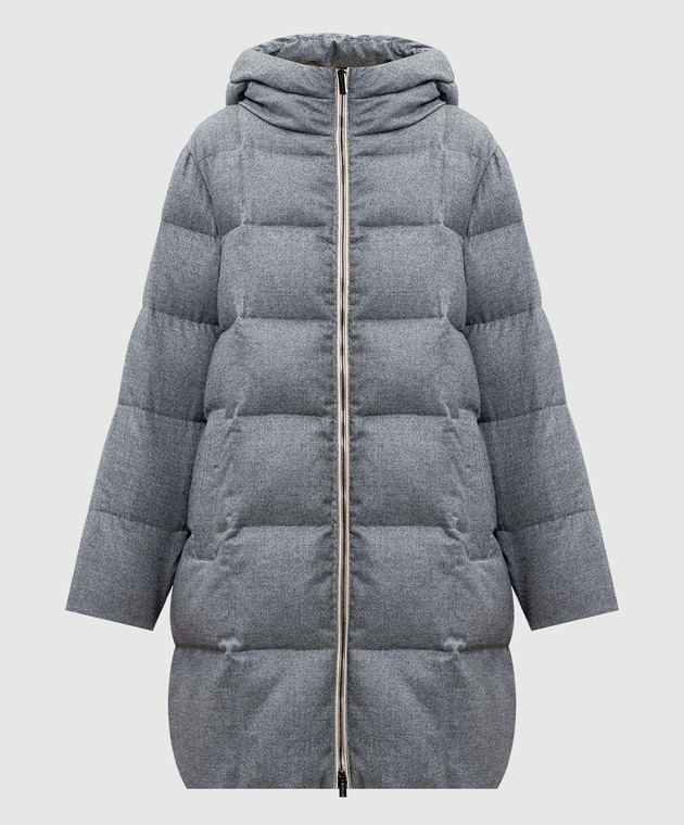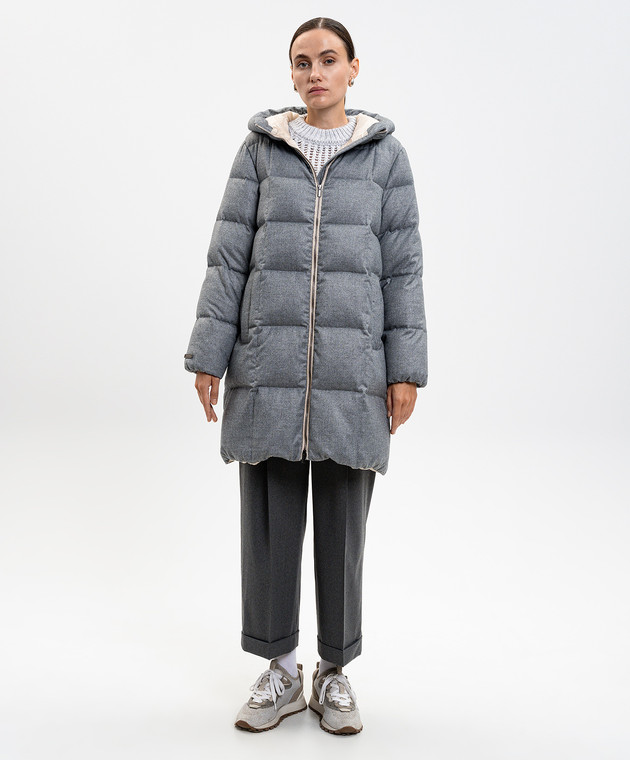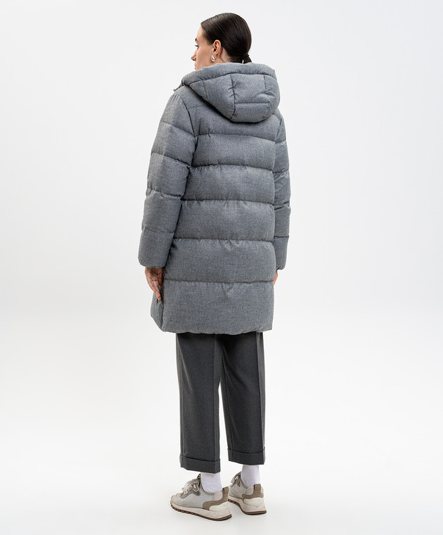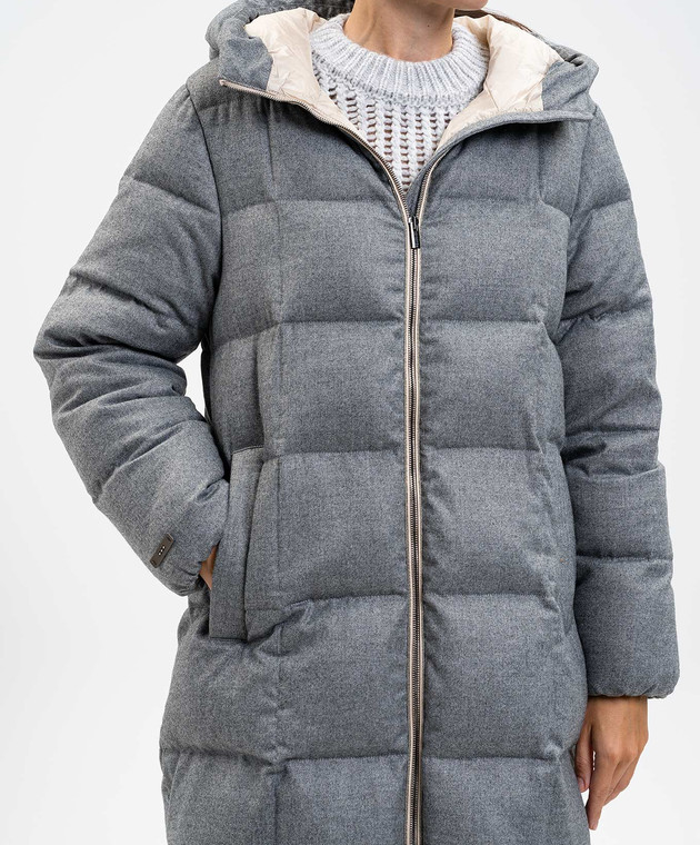 Серый пуховик с цепочкой мониль