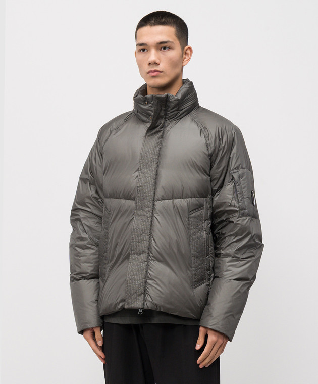 Серый пуховик с патчем логотипа