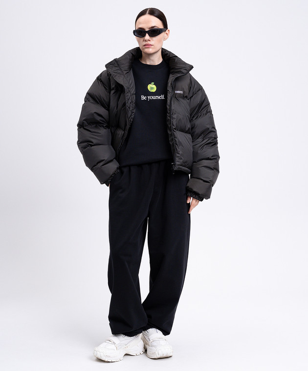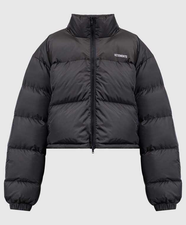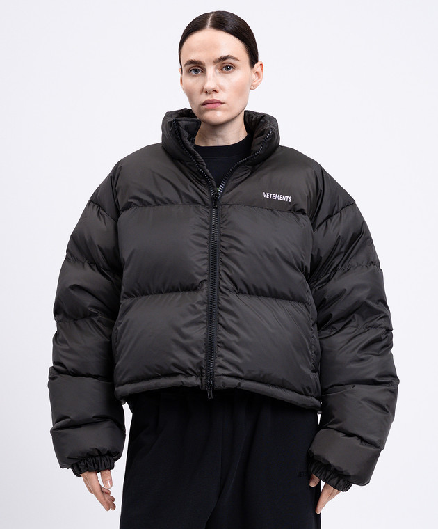 Серый пуховик с вышивкой логотипа