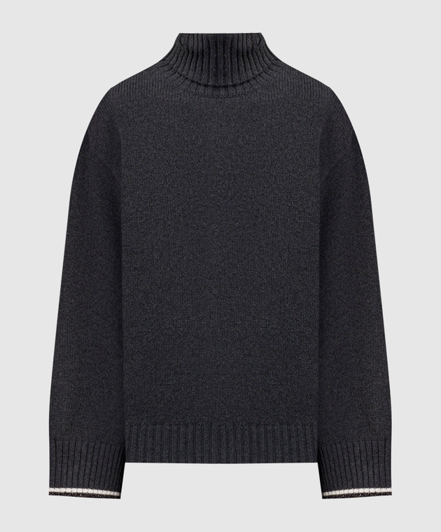 Серый свитер из шерсти, кашемира и шелка с цепочкой мониль и люрексом