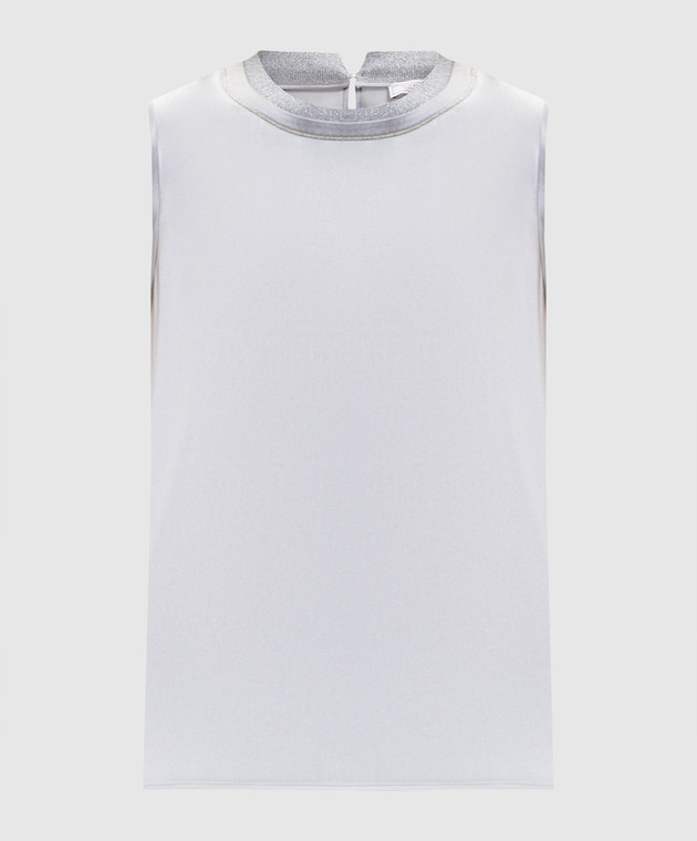 Серый топ из шелка с блестящей текстурой