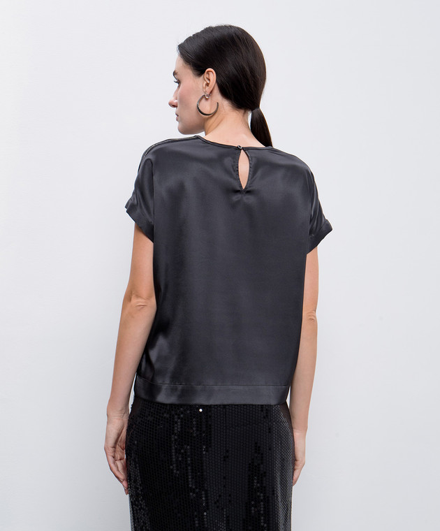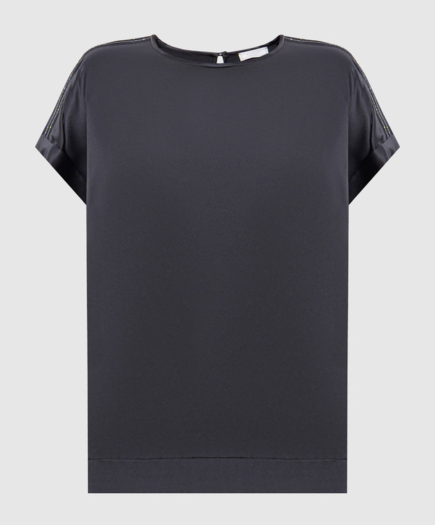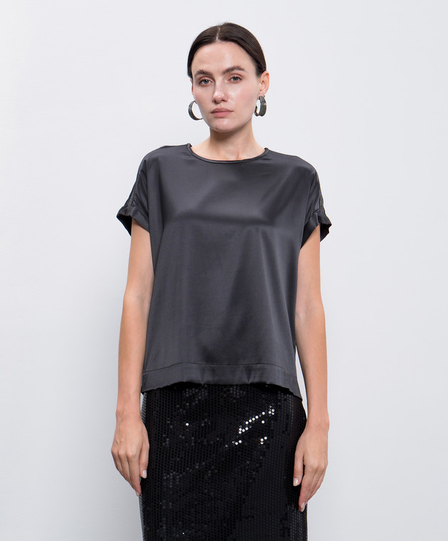 Серый топ из шелка с цепочкой мониль