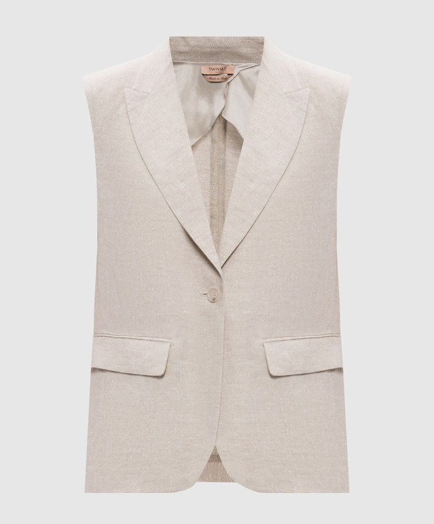 Серый жакет из льна с люрексом