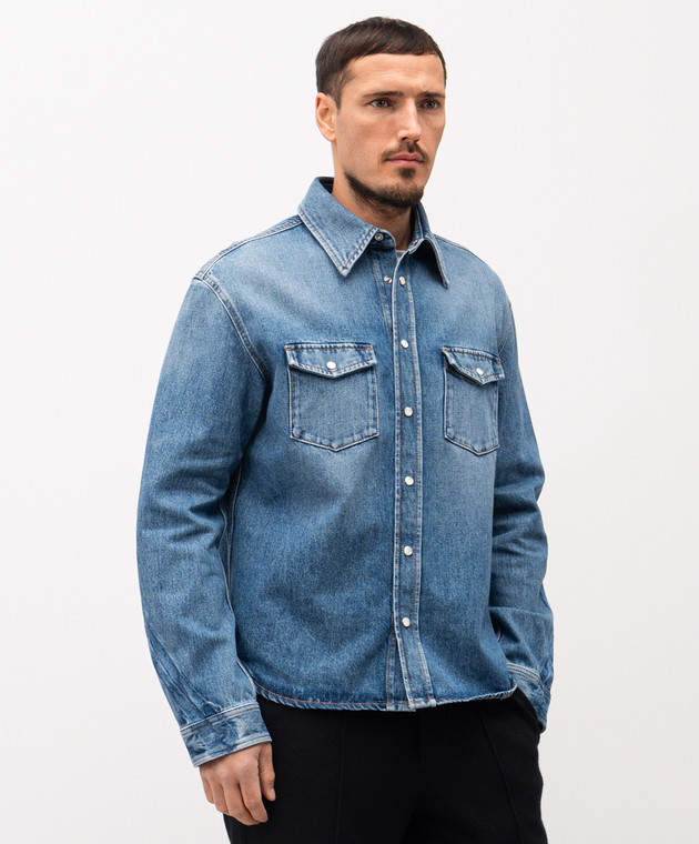 Синяя джинсовая рубашка с логотипом