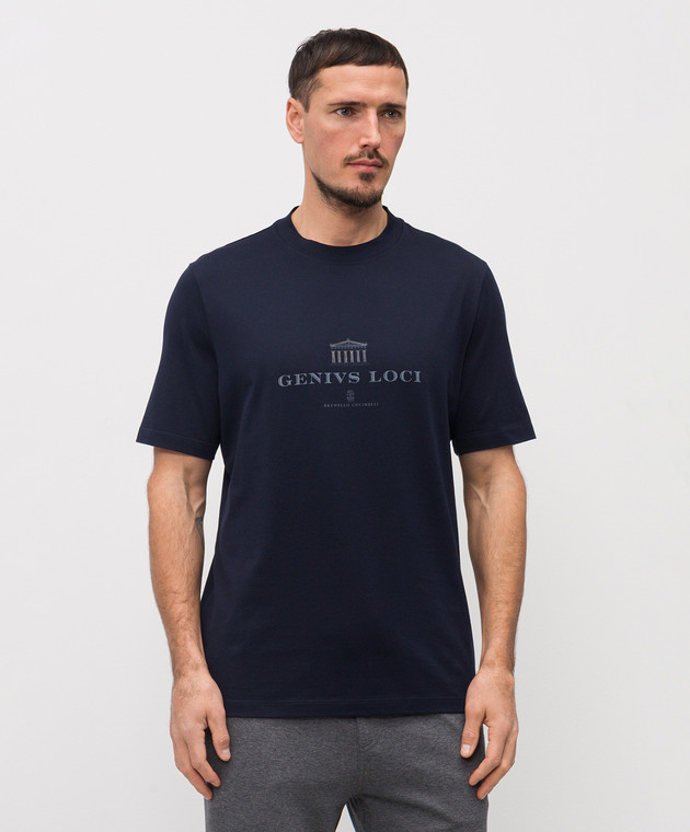 Синяя футболка с брендовым принтом