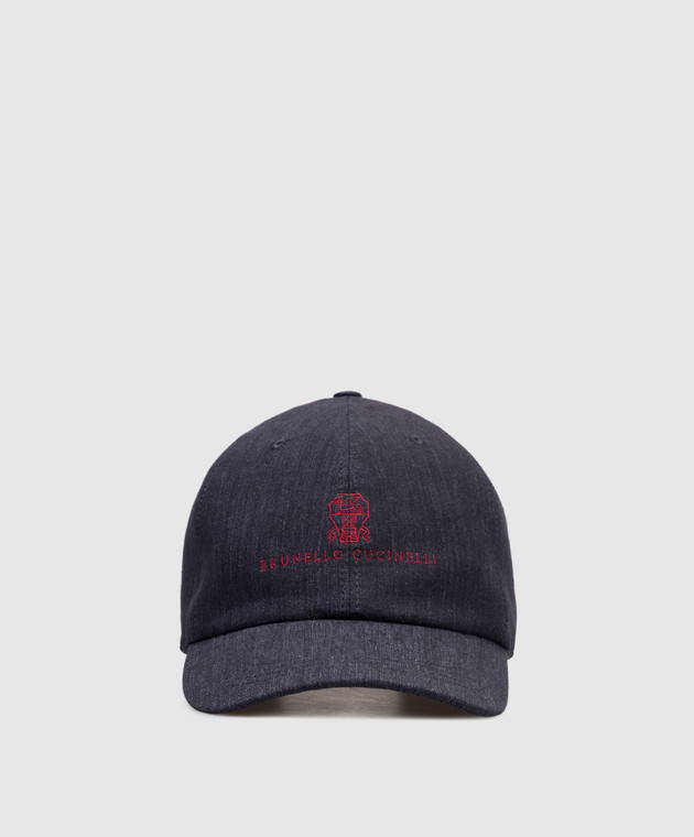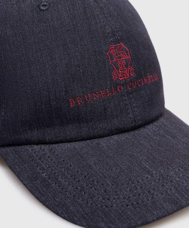 Синяя кепка из льна с вышивкой логотипа