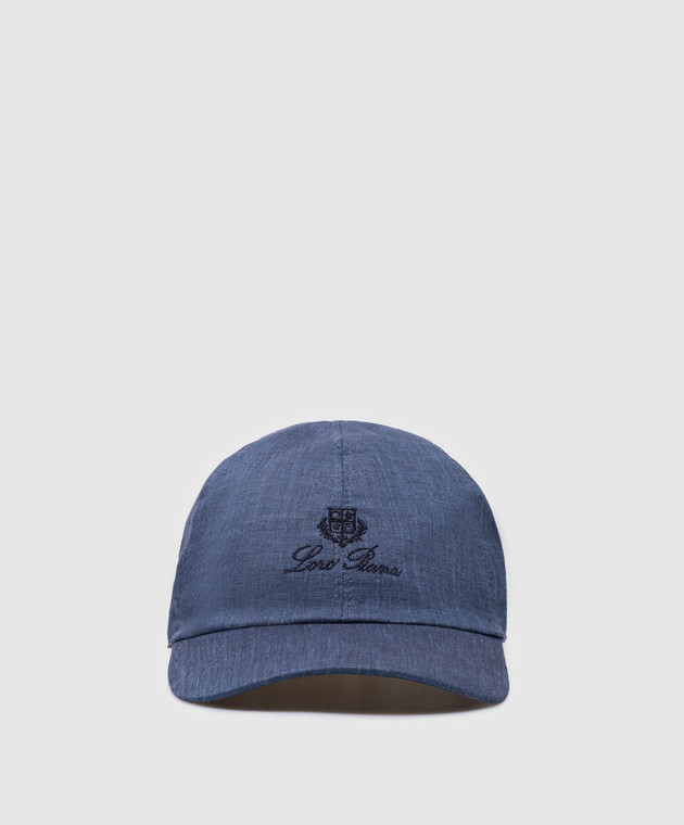 Синяя кепка из льна с вышивкой логотипа