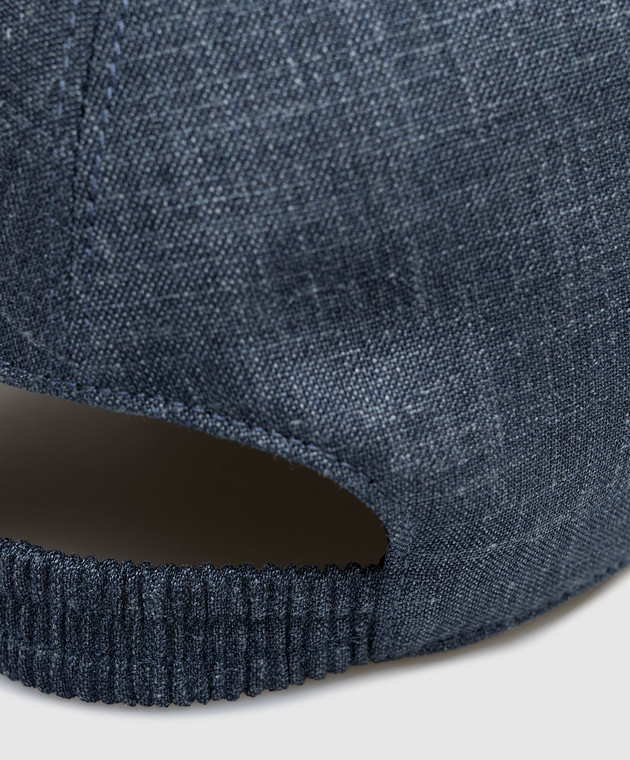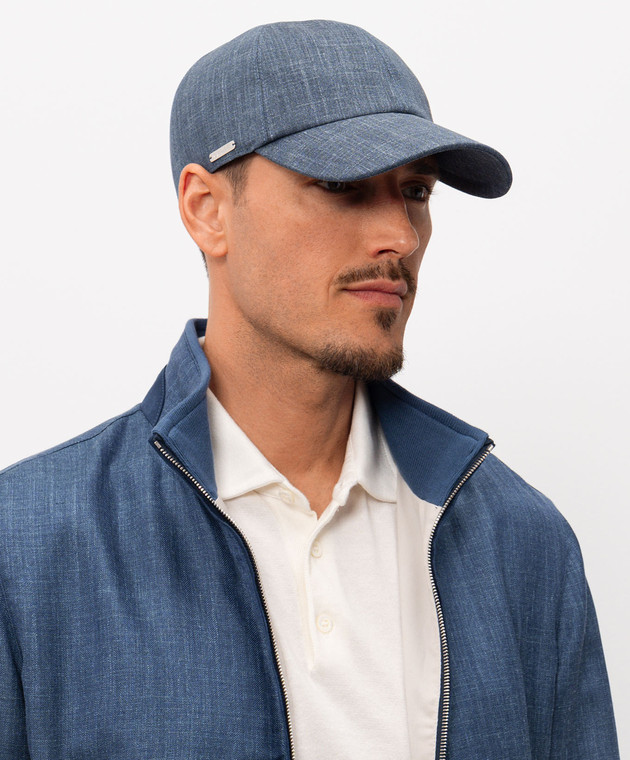 Синяя кепка из шерсти, шелка и льна с гравировкой логотипа