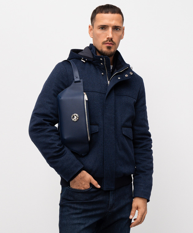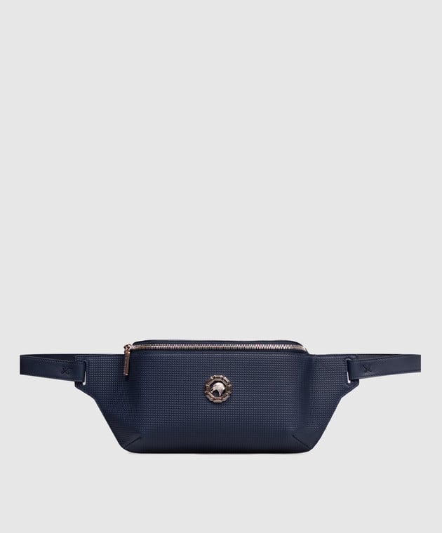 Синяя кожаная поясная сумка с эмблемой