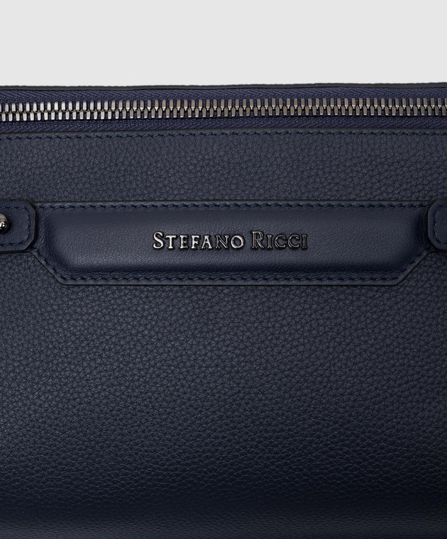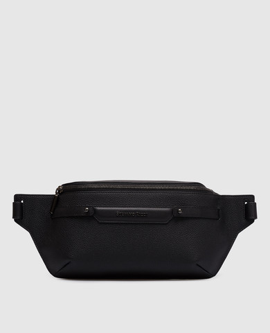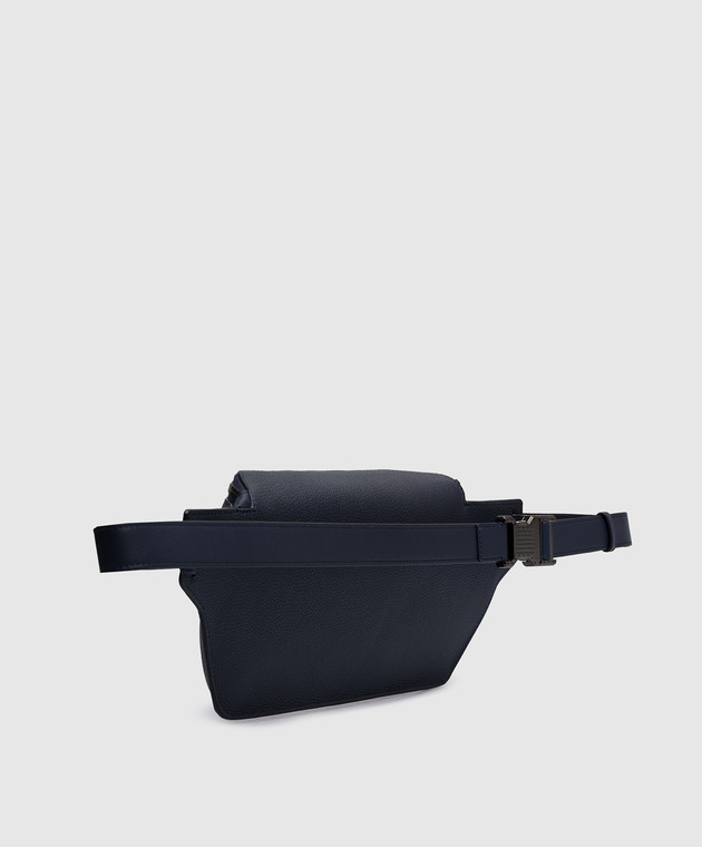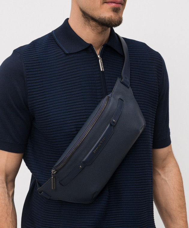 Синяя кожаная поясная сумка с логотипом с рутениевым покрытием