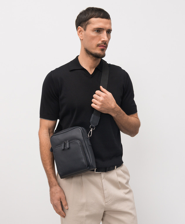 Синяя кожаная сумка Florence с логотипом
