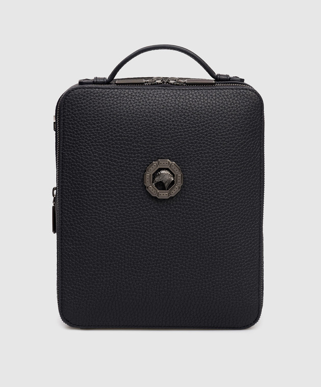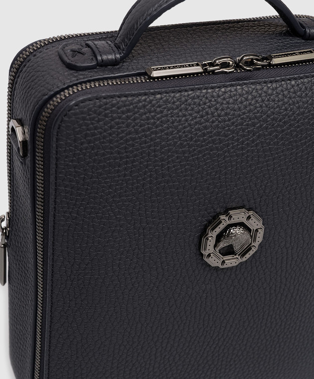 Синяя кожаная сумка с эмблемой с рутиниевым покрытием