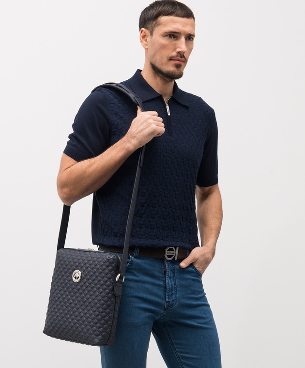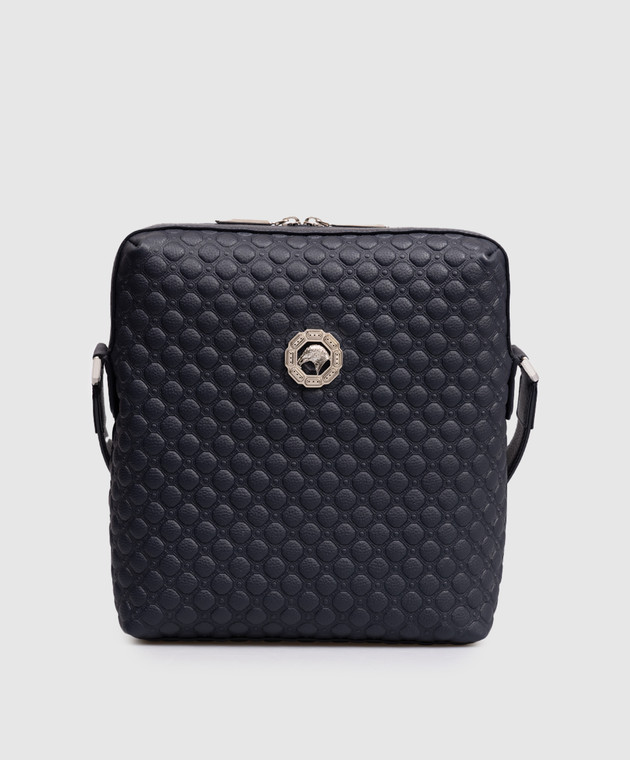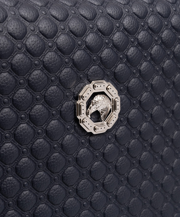 Синяя кожаная сумка с эмблемой