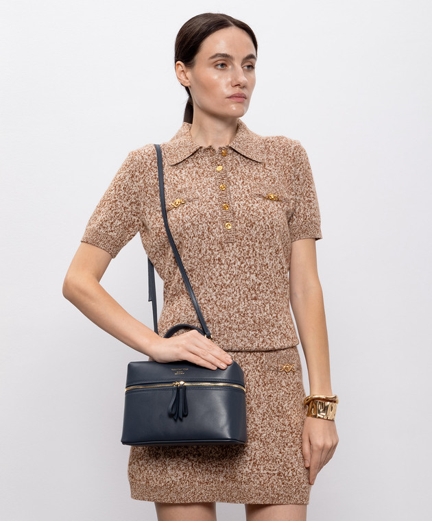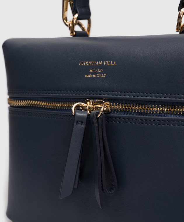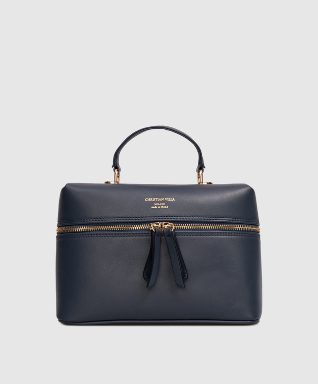 Синяя кожаная сумка с принтом логотипа